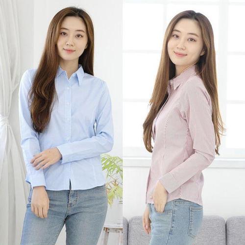 블라우스 브라우스 셔츠 긴팔 여성 스트라이프 스판 봄 가을