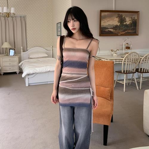 [옷자락]여자 물나염 패턴 롱스트랩 끈나시