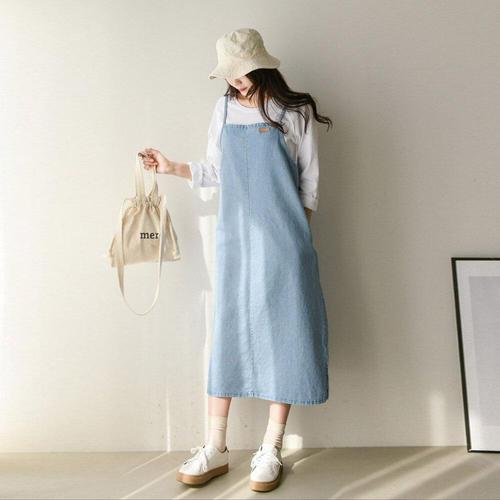 [유야]여성 국산 77까지 끈 나시 데님 롱 원피스 -FOP0616- 봄 여름