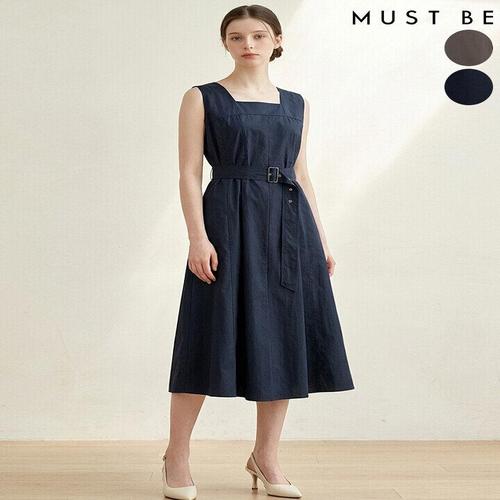 [머스트비]여성 스퀘어넥 벨티드 민소매 롱원피스
