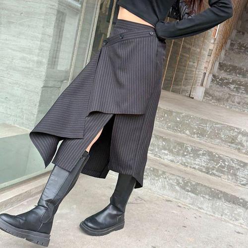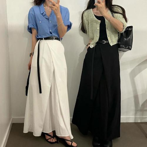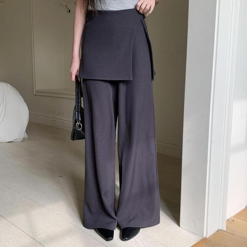 [옷자락]여자 유니크 언발 랩 스커트 레이어드 와이드 롱 슬랙스