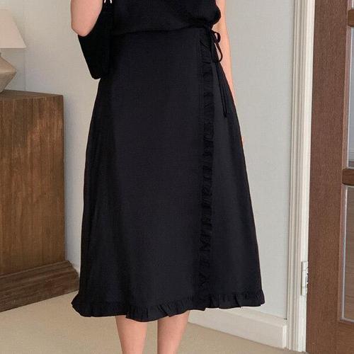 [H스타일](SK)프릴랩스커트 봄 여성 랩스커트 롱 치마