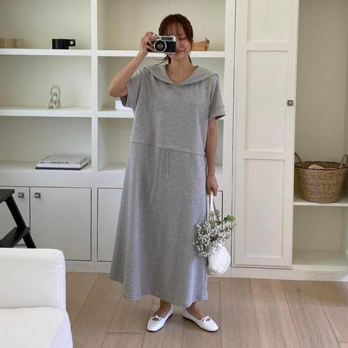 [다잇템]여자 반소매 카라넥 박시 오픈 롱원피스