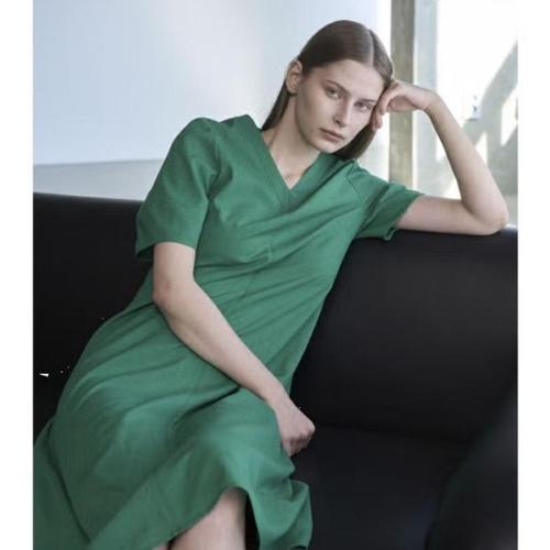 스테파니 HC07 V넥 7부소매 아가티 롱 원피스 A25SO5201