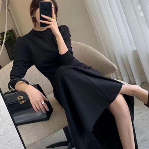 [오너클랜]인기상품 롱원피스 여성 하이넥 셔링소매 하객룩 반목 원피스 [WFLPUMS_260420]