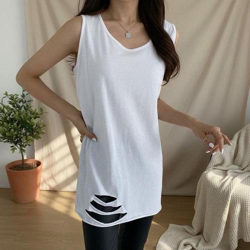 [옷자락]여자 여름 시원한 면 구제 레이어드 롱 나시