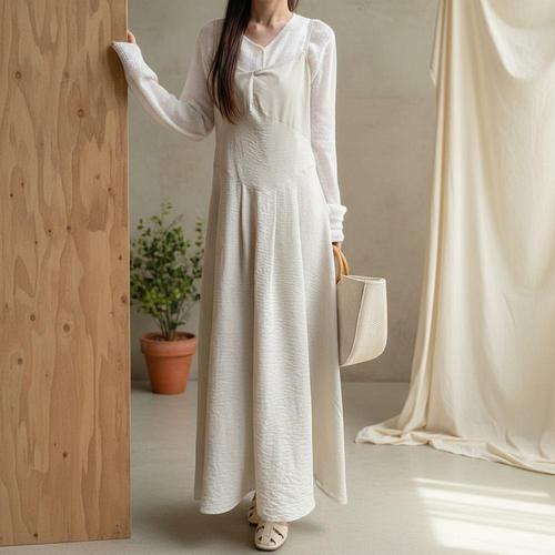 여성용 레이어드 롱 슬리브리스 원피스 체형 보정 나시 WFLLN29