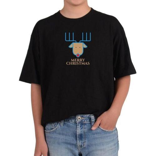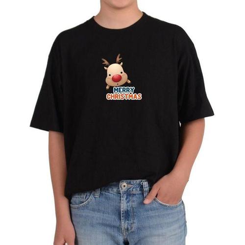 [에이치플러스몰]오버핏반팔티 메리 크리스마스 루돌프 사슴뿔 빨간코 표현 그림 모든사이즈