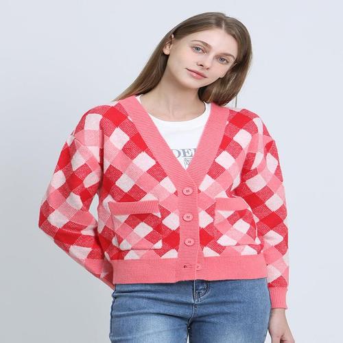르샵 여성용 하트 자수 포인트 배색 니트 가디건 DQ1CK006A