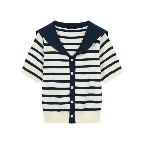 [르샵]단가라 배색 레이스 카라 반팔 가디건 (DQ2CK001A)