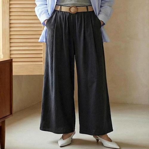 르위 히든밴딩 와이드팬츠 핀턱 코튼 사계절 여성용 바지