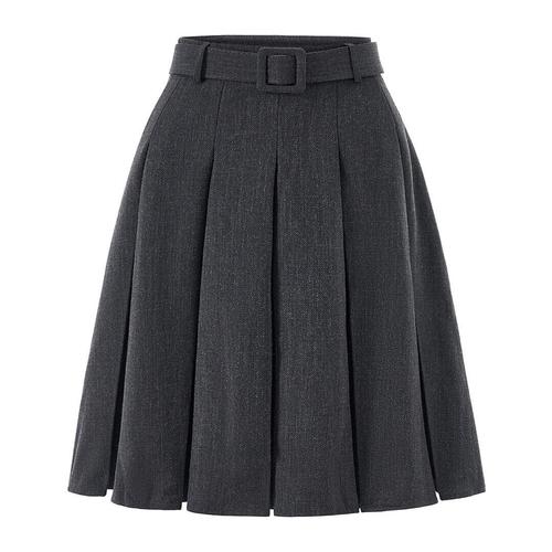 [르샵]클래식 무드 벨티드 핀턱 미디 스커트 (DQ2WH010A)