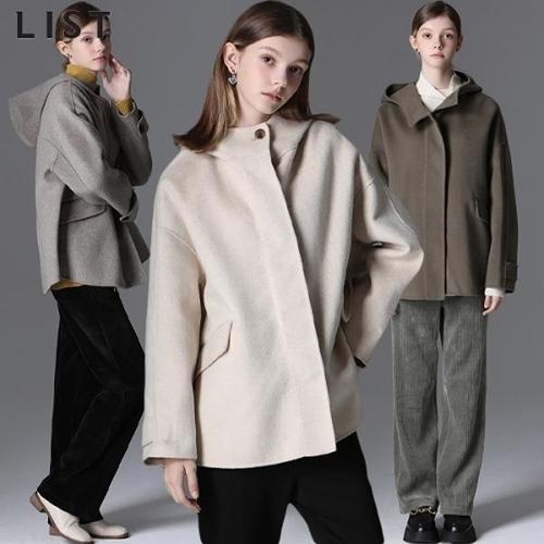 TEMU XWI 여성용 봄/여름 신상 코트 - 알파카 양면 코트, 핸드메이드 트림, 가을/겨울 캐주얼 커뮤터 스타일