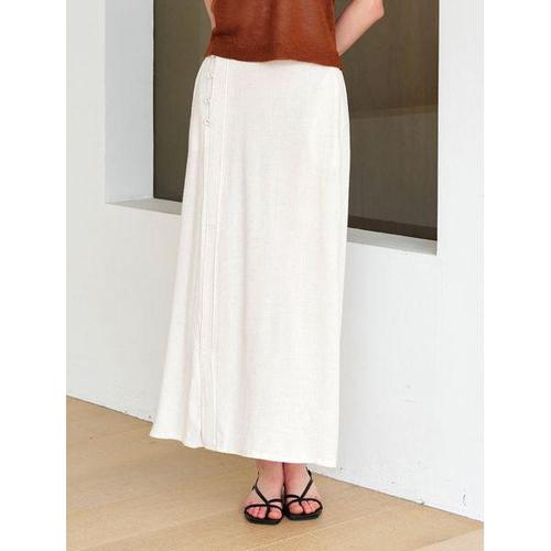 허니제이 / 그로우 버튼 린넨혼방 뒷밴딩 롱 스커트(2color)