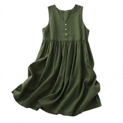 Makone 여성 린넨 심플 무지 데일리 솔리드 나시 미디 원피스 루즈핏 캐주얼 민소매 베이직 체형커버