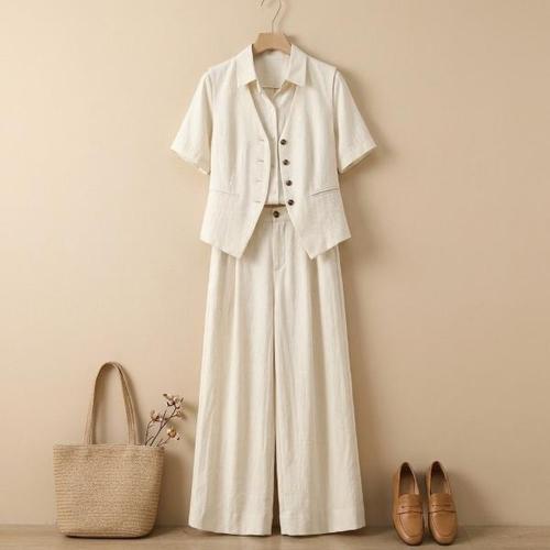 [셀럽하우스]홀릭메이커 TGVN8408 여성 셋업 HPNT012 린넨 자켓 반바지 세트