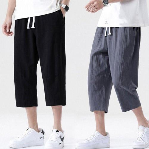 2026 남성 여름 초특가 빅사이즈 리넨 7부 바지 얇은 냉감 슬랙스 밴딩 바지 와이드 루즈핏 캐주얼 팬츠 시원하고 통기성이 좋은