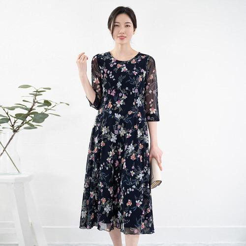 [모슬린]엄마옷 시스루 장미 미디 원피스 614FGH200 마담/중년여성/빅사이즈/50대/60대