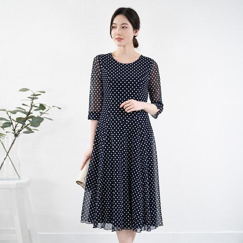 [모슬린]엄마옷 시스루 도트 원피스 614FGH196 마담/중년여성/빅사이즈/50대/60대