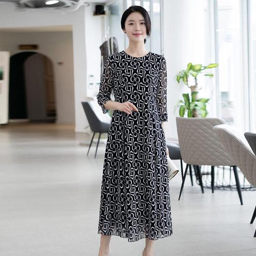 엄마옷 드리다 여성 봄 가을 패턴 쉬폰 프릴 빅사이즈 원피스 40-50대 미시 중년여성 마담옷 하객 상견례