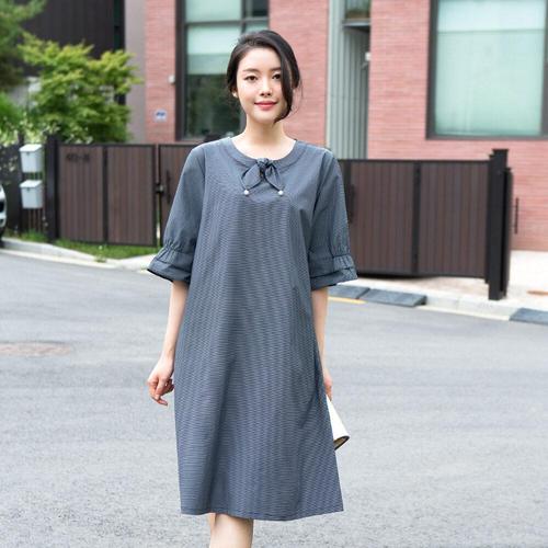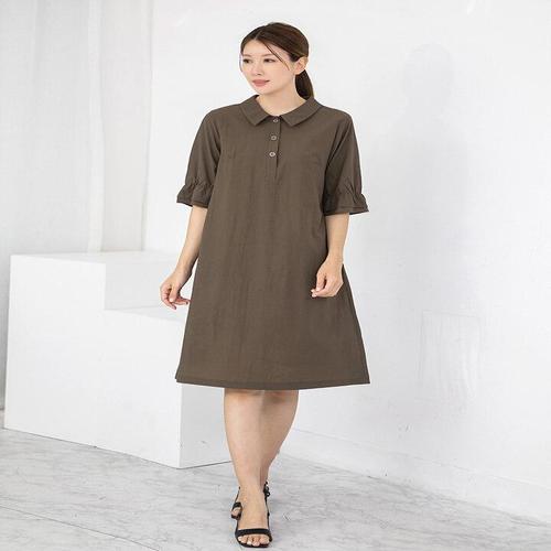 귀여운 면 마 반팔 롱 원피스 루즈핏 여름 편안한 린넨 빅사이즈원피스