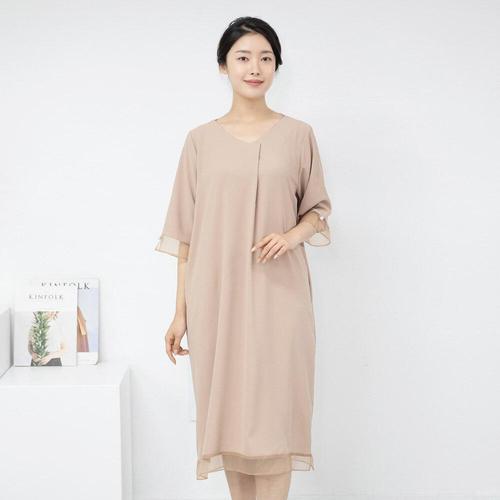 [모슬린]엄마옷 브이넥 반팔 노방 원피스 614FGH178 마담/중년여성/빅사이즈/50대/60대