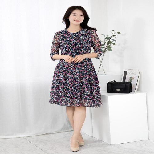[모슬린]엄마옷 플라워 이단 플레어 원피스 614FGH278 마담/중년여성/빅사이즈/50대/60대