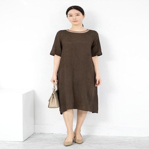 [모슬린]엄마옷 라운드 반팔 무지 원피스 614FGH126 마담/중년여성/빅사이즈/50대/60대