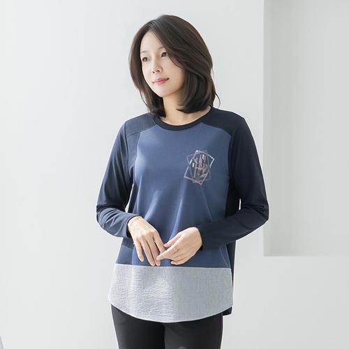엄마옷 마담4060 에바패치단가라티셔츠 -QTE2604031-