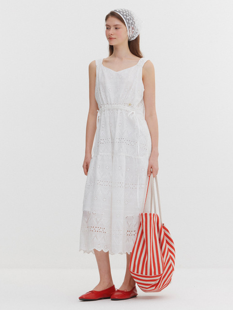 [마리끌레르] 레이스 스트링 슬리브리스 롱 원피스(MAGBOP05MWH)