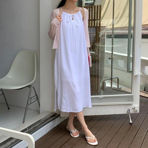 [다잇템]여자 롱 카라 마원단 쿨링 슬리브리스 원피스