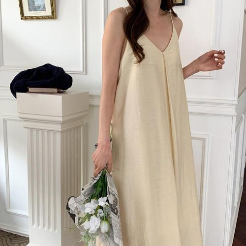 [다잇템]여자 마원단 슬리브리스 미들 V넥 롱원피스