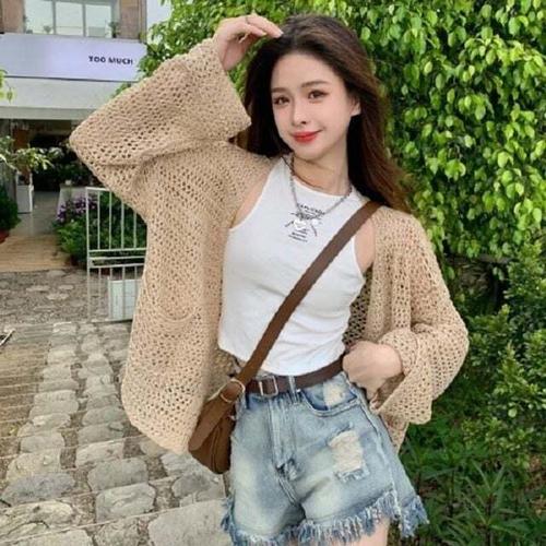 [셀럽하우스]그물 OPAL6558 망사 니트 가디건 여름 긴팔 휴양지가디건 여자