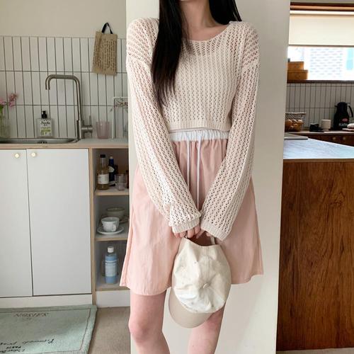 [다잇템]여자 보트넥 망사 비침 썸머 잔주름 니트
