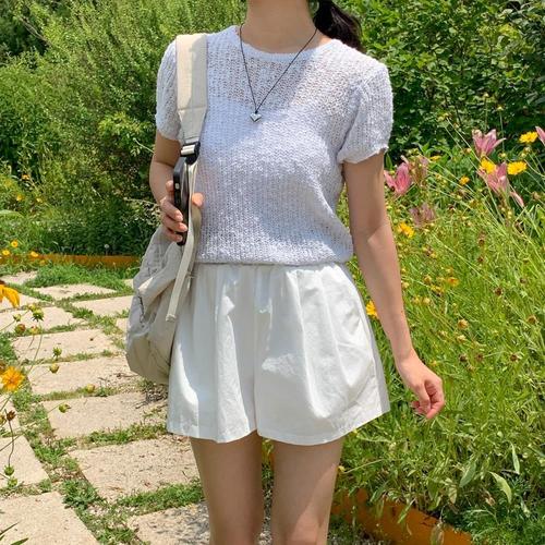 [오너클랜]인기상품 사각넥 망사 보우퍼프소매 스테디 크롭반팔티 [WFLEJRZ_260415]
