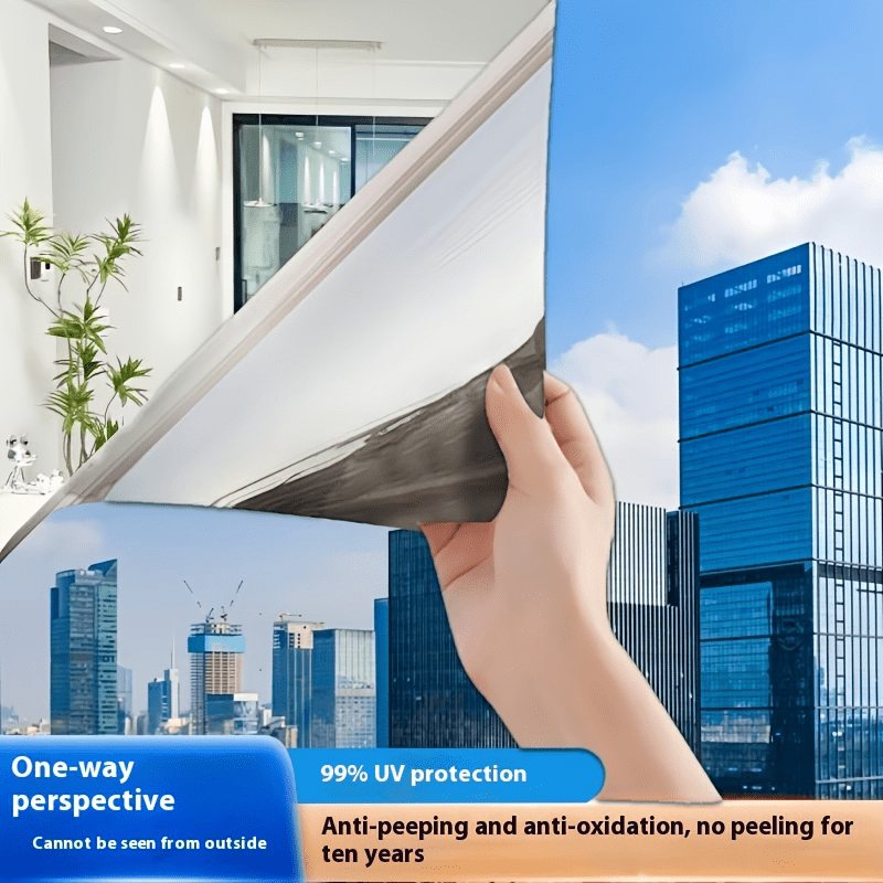 TEMU 단방향 프라이バシー 창문 フィルム, 훔뿔보기 방지, 정전기 흡착으로 간편한 설치, 가정 및 사무실용, 은색 창문 フィルム