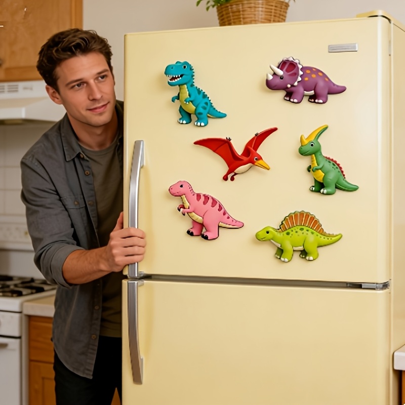 TEMU 냉장고, 식기세척기, 자동차 장식용 공룡 자석 6개 세트 - 교육용 공룡 차트가 포함된 아크릴, 방을 위한 색상 코드, 선물용 (팁 없음)