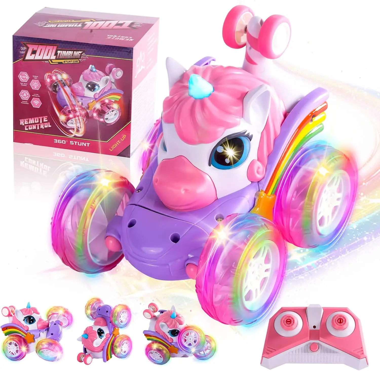 2.4G 조명 유니콘 원격 제어 스턴트 덤프 트럭 체이스 라이트 트위스트 변경 자동차 드리프트 춤 장난감 자동차, 어린이 새해 바이
