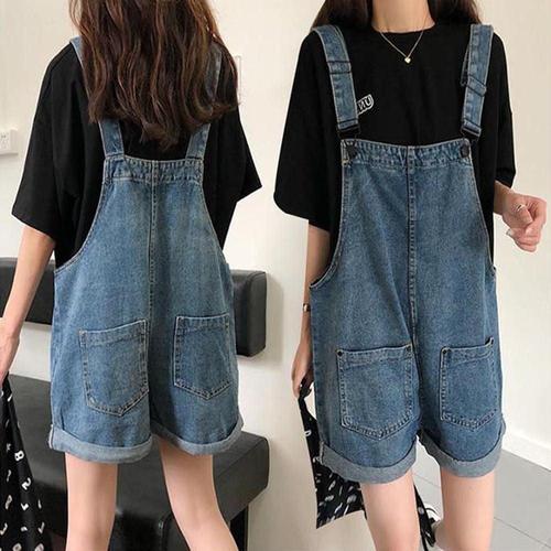 여성용 봄 여름 루즈핏 청멜빵바지 캐주얼 5부 데님 점프슈트 반바지