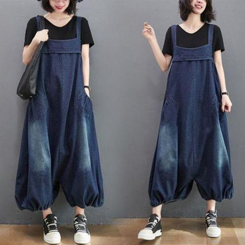 오버롤 청 여성 멜빵바지 와이드핏 점프수트 데님 (HSJ-WFKBXFO)
