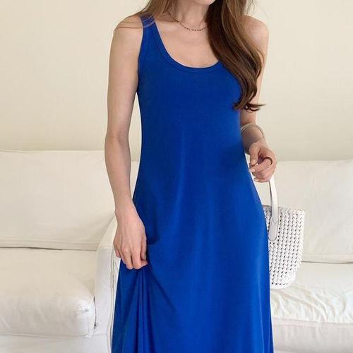 TEMU 솔리드 컬러 V넥 롱 드레스, 여성용 캐주얼 민소매 루즈핏 드레스, 여름 및 봄에 적합