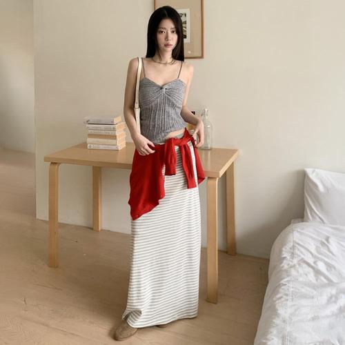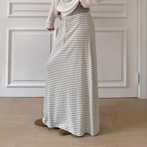 [미라클세븐]여성용 봄 여름 코튼 스트라이프 롱 스커트
