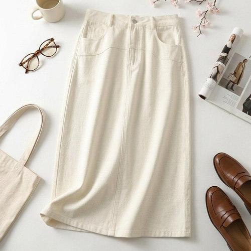 봉봉 A라인 롱스커트 데님 면100 여름 밴딩 데일리 봄 스티치 간절기 미시 20대