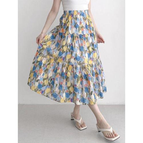 [미라클세븐]여성용 사계절 코튼 레이어드 롱스커트 봄가을 데일리 스타일