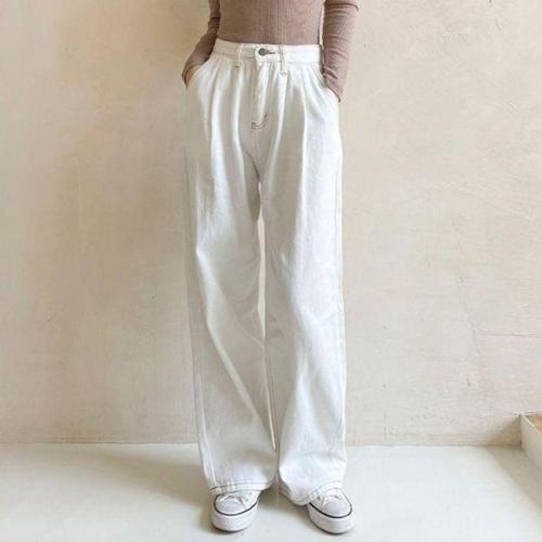 퓨어 순면 세미와 롱버전 팬 우먼 스타일 화이트컬러팬츠 면바지 WFLF3UU