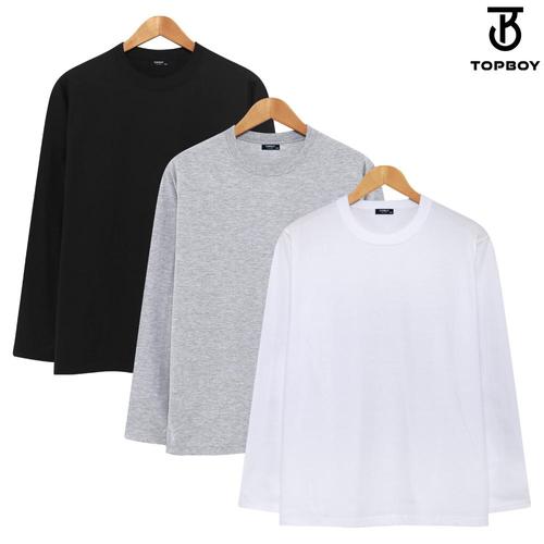 3장세트 남녀공용 30수 라운드 빅사이즈 무지 면티 긴팔 티셔츠 (SETB002)