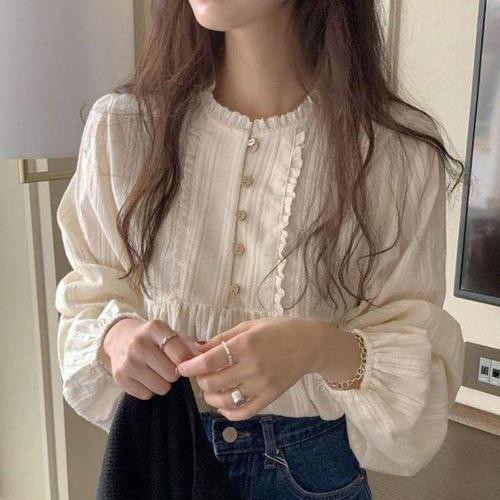 [옷자락]여자 봄 여름 면 루즈핏 프릴 퍼프 블라우스