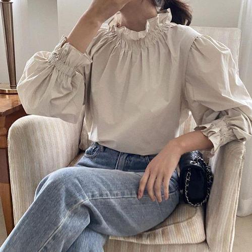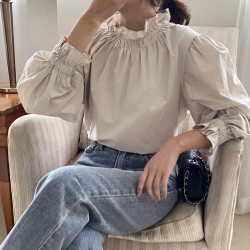 [다잇템]여자 프릴 모크넥 벌룬 면원단 블라우스