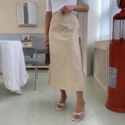 [다잇템]여자 백밴딩 면원단 투핀턱 슬릿 롱스커트