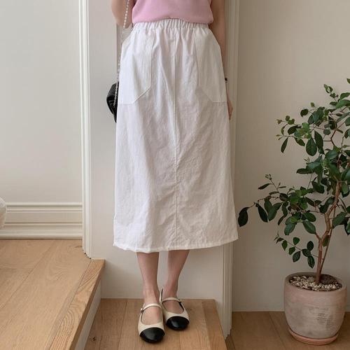 [다잇템]여자 슬릿 허리밴드 주머니 면원단 롱스커트